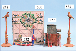 , ca. 1890, 49 cm breit, 42 cm hoch, Erdkugel mit Druckstelle, Papier lithogr., auf Platte unterhalb der Kerze teilw. verschlissen, sonst guter Zust., früh, selten