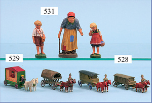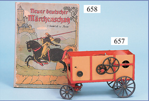 Konv. Zinn, flach, Märchenfiguren, 5 cm, Goldesel, Tischlein deck dich, Hans im Glück, dazu 1 Brunnen, Bäume, Laternen, 1 Gespann, meist Zust. 2, ausgef. Darstellungen