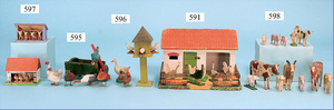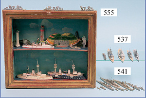 kl. Ritterburg mit Burggraben, um 1900, 47 x 26 x 29 cm, mit lithogr., Papier beklebt, dekor.