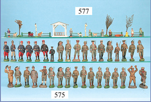 ca. 150 Teile Zinn, flache 3 cm Figuren, zivile Darstellungen, Berufe, bäuerliches Leben, Stadtleben, Reisende, Hausarbeit, meist Zust. 2 ( n. a. T. f. )
