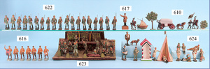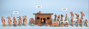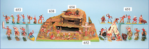 ELASTOLIN, Konv. Indianer, Masse, 3 Reiter, Kajak, mit Ruderer, 12 Figuren kämpfend, Zust. 1