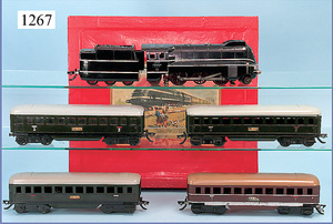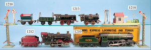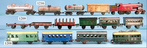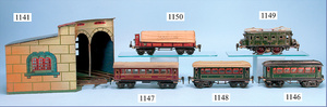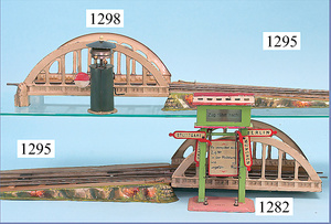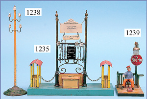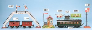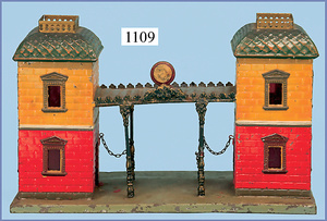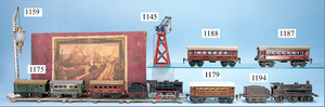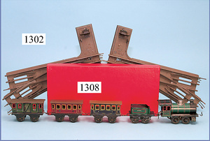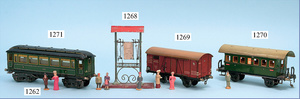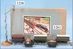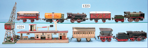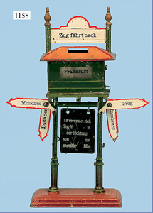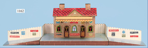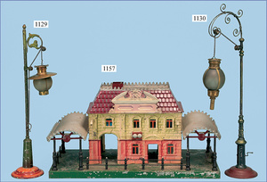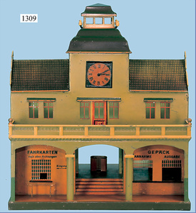 MÄRKLIN, Zentralbahnhof, 2014, 1902 - 1914, 42 x 30 cm, Steinprägung, Gebäude mit seitlichem Durchgang, Dach mit Ziergittern, 1 Giebel mit imitierter Uhr, Giebeldachfenster, 8 Isolatoren fehlen, Glasfenster, Kerzenbeleuchtung, Inneneinrichtung, Läutewerk, Bahnsteiggeländer, seitlich Wellblech Bogendach mit 2 Stühlen, Bodenplatte war ursprünglich übermalt, Orig.-Farbe wurde später freigelegt, guter Zust.