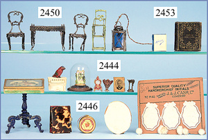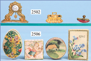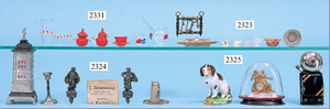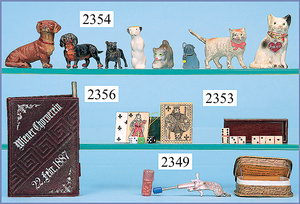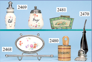 schönes Konv. Puppenstuben-Ausschmückungsteile, Schreibset, kl. Platte, wohl MÄRKLIN, Glasteile, Zinn-Schlüsselbrett, mit Zinnschlüsseln, 4,5 cm