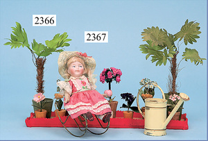 kl. Blumenbank, 8,5 cm, 2 Blumentöpfe Zinn, kl. Gießkanne Blech
