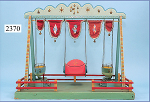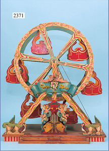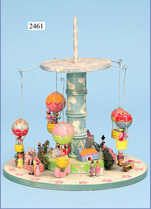 kl. Ketten-Karussell, Holzarbeit, ca. 1930, 36 cm Durchm., Holz Papier beklebt, Eigenbau