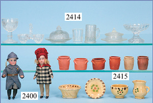 Konv. Puppenstuben-Glasteile, Kaffeeservice, Bowleservice, Krug mit Tassen (n. a. T. f.)