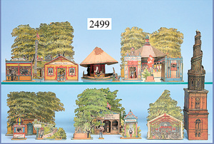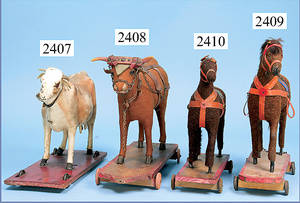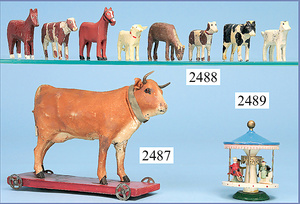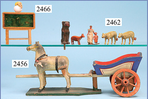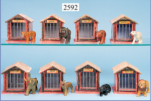 Zootiere, 8 kl. Holzkäfige, 10 x 9 cm, mit passenden Massetieren, meist guter Zust., ein paar Tiere mit altersbedingten Fehlern, ca. 1920