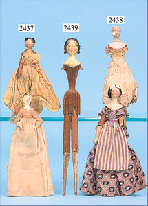 Puppenstuben-Puppe, Biedermeier, Biskuit-Brustblattkopf, fein ausmodellierte Haare, Biskuitarme u. -beine, Stoffkörper, aufwendige Orig.-Kleidung, 8,5 cm