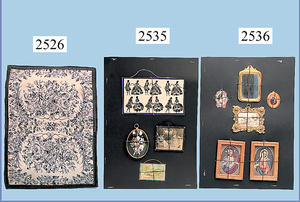 3 Puppenstuben-Teppiche, 13,5 cm, kl. Vase 5,5 cm, 1 Madonnenfigur, Biskuit etwas abgegriffen