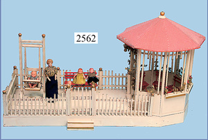 kl. Puppenhaus, Manufakturarbeit, ca. 1950, 57 cm breit, 34 cm hoch, 24 cm tief, möbliert, Liegestuhl u. Pilzschirmlampe, schöner Orig.-Zust.