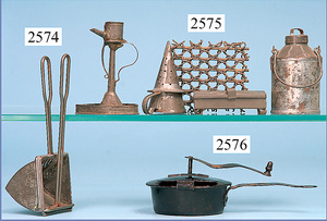 Konv. Puppenstuben-Zubehör, Zeitung, Zinn-Krug, Teppich, Kerzenleuchter, Zinnofen, mit figürlicher Spitze, 11,5 cm