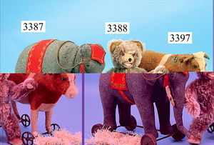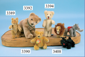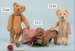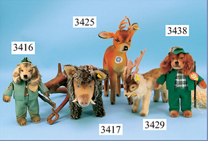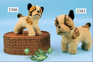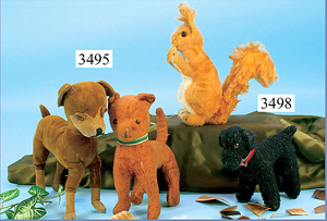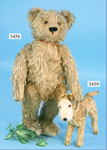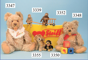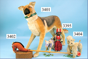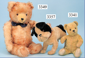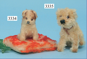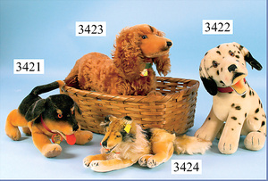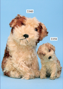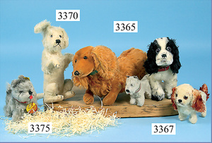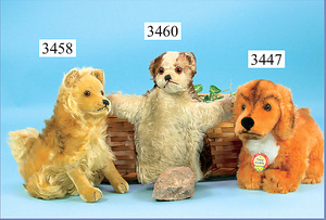 STEIFF, Konv. 3 Teile, Hunde, 1x Dackel, 40 cm, 1x Terrier, 11 cm, 1x Spaniel 22 cm, Spaniel mit Knopf u. Fahne, Nr. auf Fahne 4276/19, Dackel mit Knopf, guter Zust.