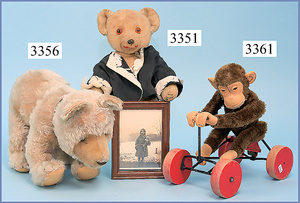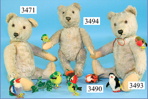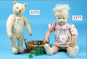 STEIFF, Teddy, "Clownteddy", gr. Glasaugen, Mohair wohl weiß, helle Nasenbestickung, 36 cm, weiche Stopfung, Kapokfüllung, bespielter Zust., Füße u. Pfoten evtl. ersetzt, um 1927, mit Knopf