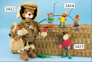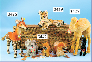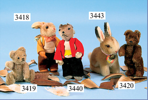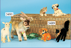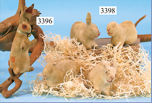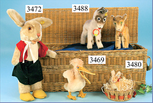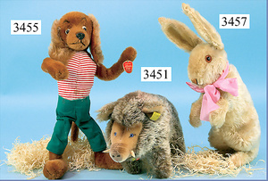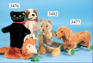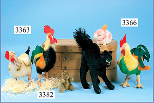 STEIFF, 3 Teile, Katze, Hund, Hahn, schwarze Katze, 1929, 30 cm, ohne Knopf, Schild u. Fahne, Hahn mit Knopf mit langgezogenem F, Schild, ohne Augen, 25 cm, Wollie Hase mit Knopf, 8 cm, guter Zust.