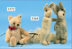 Konv. 2 Teile Hasen, 1x Hase Vorkrieg, ohne Knopf, Schild u. Fahne, 19 cm, stark bespielt, Drehkopf, 1x Hase stehend, 21 cm, Hersteller?
