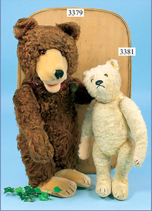 STEIFF, Floppy Panda, 28 cm, 50er Jahre, mit Schild, STEIFF Floppy Zotty , 28 cm, 50er Jahre, Mohair Zimt, beide liegend, guter Zust.