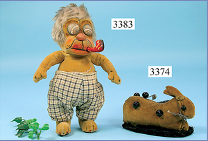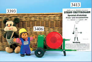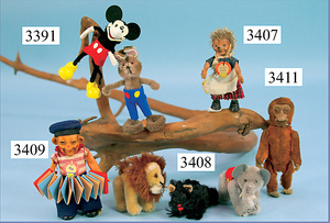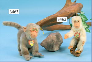 STEIFF, Affe, 13 cm, um 1930 - 40, mit Knopf, Pfoten verbrannt, Affe, 13 cm, Vorkrieg, mit Knopf, zusammen im STEIFF Wägelchen aus Holz mit Orig.-Schild
