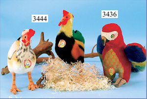 STEIFF, Konv. 2 Teile, Hahn u. Henne, Hahn mit Knopf, Schild u. Fahne, Nr. auf Fahne 3350/28, 30 cm, Henne ohne Knopf, Schild u. Fahne, 20 cm, guter Zust.