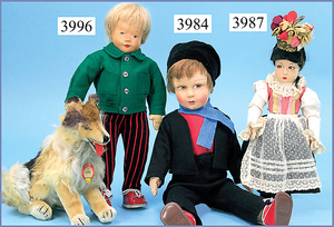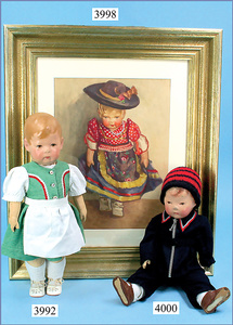 LENCI, Trachtenpuppe, Stoffkopf, gemalte seitlich blickende Augen, Orig.-Kleidung, Schild liegt lose bei, ausgef. Hut, mit Filzblumen garniert, 32 cm, sehr guter Zust.