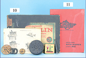 BING, gr. Steinbaukasten, mehrlagig, ohne Anleitung, wohl weitgehend kompl., auf Vollständigkeit nicht geprüft, ein paar Steine mit Rissbildung, lithogr., Deckbild, selten