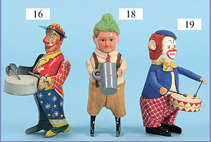 SCHUCO, Tanzfigur, Clown, mit Trommel, 11 cm, Blech, Filzkleidung, guter - sehr guter Zust., Uhrwerk intakt