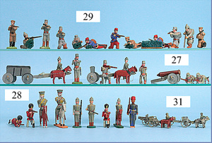 ERZGEBIRGE, Militärzug, Gespann mit Kanone, 1 Planewagen, Figuren 7 cm, mit Nase, ein paar Figuren beschädigt, meist guter Zust., ein paar Kleinteile fehlen, Gespanne sehr gut