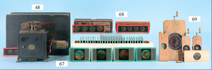 ERNST PLANK, Laterna Magica, 18,5 cm, mit Brenner, Löwentatzen-Füßen, 12 Glasstreifen, Orig.-Kart., mit Anleitung
