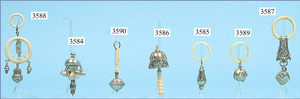 Kinderrassel, mit Ring, mit Anhängern, 3 Tropfen, eine Bärfigur, Ringe aus Bein, 19. Jhd., Länge 8 cm