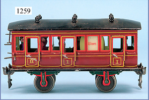 MÄRKLIN, Uralt, Spur I, 1856, Abteilwagen 2A, 22 cm rot/braun, mit Inneneinrichtung u. Toilette, Dach mit 6 Lüftern, 1902 - 1906, 7 Figuren, minimalste altersbedingte Lackfehler, sehr schöner Orig.-Zust., sehr schöne Farben, Orig.-Figuren, Dachbodenfund aus herrschaftl. Haushalt