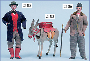 PFEIFER, Puppenstuben-Puppe, 15,5 cm, Masse-Kopf mit anmodelliertem Hut, Beine mit aufgemalten Schuhen u. Strümpfen, Orig.-Filzkleidung, Hände weggebrochen