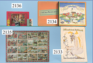 Nürnberger Bilderbuch, Nr. 24a, aus dem kl. alten Städtchen, mit Bildern von Else Wends Vietor, Nürnberger Bilderbücher Verlag, Gerhard Stalling, Oldenburg i. Old., Bilderbuch mit bewegl. Figuren, bis auf ein paar Figuren u. Kleinteilen kompl., Litho in sehr gutem Zust., im Orig.-Schutzkart., ausgef. Darstellungen vom Dorfleben, Marktszene, Kutsche, Kolonialwarenhändler, Dorfschule