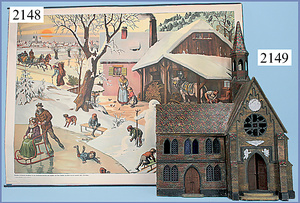 Papiertheater mit Musikspielwerk, aufwendig gearbeitetes Gehäuse, vorne mit Glasplatte, Uhrwerk intakt, Mechanik muss jedoch montiert u. eingestellt werden, sehr dekor., mit Zubehör, 45,5 x 40,5 cm
