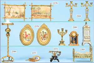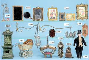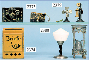 Puppenstuben-Ausschmückungsteile, Ventilator, 4 cm, 1 Telefon, wohl ERNST PLANK, 20er Jahre