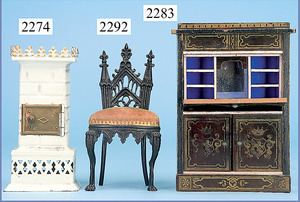 Puppenstuben-Ofen, Blech, handlackiert, Messingtür, 14,5 cm, 1 Kohlenschütte