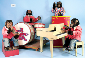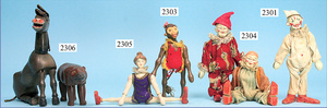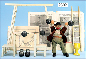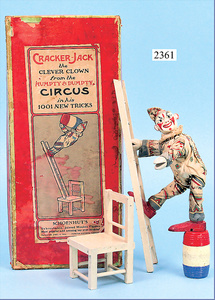 SCHÖNHUT, Humpty-Dumpty, Cracker-Jack, Clown mit Leiter, Fass u. Stuhl, im Orig.-Kart., innen Anleitung, Kart. mit bunt lithogr. Deckbild, seitlich etwas verschlissen, sehr schöner Orig.-Zust.