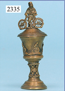 ausgef. Puppenstuben-Telefon, Blech-Sockel, Hörer Messingblech vergoldet, mit Kurbel u. 2 Glocken, filigran gearbeitet, guter Zust.