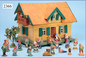 Zwergenhaus, Holz, 26,5 cm breit, Dach zum Abnehmen, 20 Masse-Zwerge