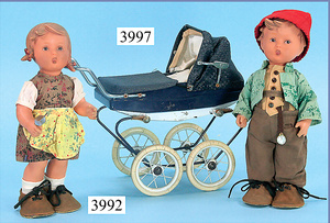 KÄTHE KRUSE, kl. Du Mein, 36 cm, Stoffkopf, 3 Hinterkopfnähte, breite Hüfte, separat angenähter Daumen, alte Kleidung, ein wenig Farbverlust am Hinterkopf, Nasenspitze etwas berieben, kl. Farbabriebstelle an der linken Wange, schöner Orig.-Zust.