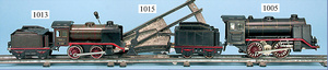 Schlepptenderlok B, Blech lithogr., Spur 0, elektr. Ausführung, 2 beleuchtete Stirnlampen, wohl farblich überarbeitet, am Schornstein gedrückt, obere Stirnlampe fehlt