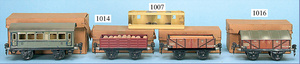 MÄRKLIN Konv. 3 Teile, Spur 0, 2 Güterwagen, 1661, sowie 1916, sowie Personenwagen 1725, neuwertig, Orig.-Kart.