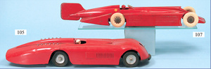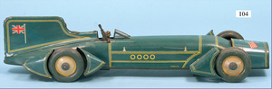 Rekordfahrzeug, Kingsbury's, Steel Road Cars, USA, Vorkrieg, Blech, Gummireifen, Uhrwerk intakt, bespielt, altersbedingt Lackfehler