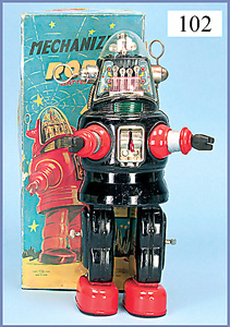 MECHANIZED Robot, T. N. Japan, Batteriebetrieb, 32 cm, leicht bespielt, Kart. Replika, techn. nicht geprüft