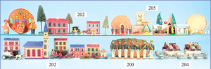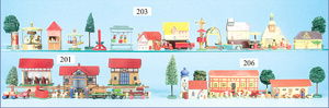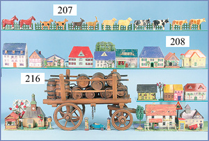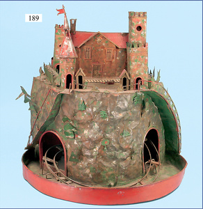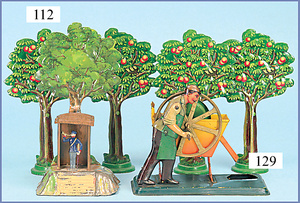 Issmayer Wärterhäuschen auf Sockel mit Baum, 4 Bäumen, Blech lithogr., 18 cm, leichte Lackabplatzer am Sockel des Wärterhäuschens, guter Zust.