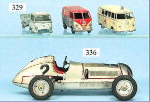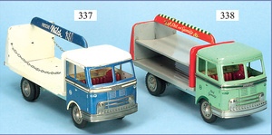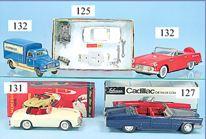 TIPP & CO Hanomag, blauer Expresswagen, Friktionsantrieb, hintere Türe ist neu gemacht, bespielter Zust., sowie ein Cadillac Thunderbird, neuere Produktion, rot, Friktionsantrieb, bespielter Zust.