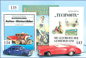 3 Bücher, Battenberg Sommerkatalog , Blechspielzeug, Autos und Motorräder von Rudger Huber, 1982, sowie Technofix, die Geschichte der Gebrüder Einfalt, von Dieter Warnecke, Verlag Puppen und Spielzeug,1993, sowie Illustrierter Hauptkatalog, 1912, August Stukenbrokn Einkeck, alle sehr guter Zust.