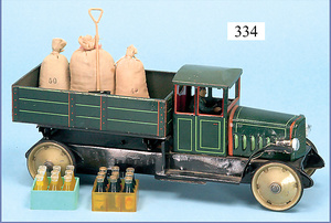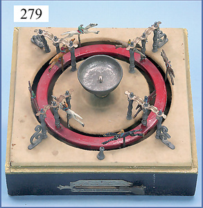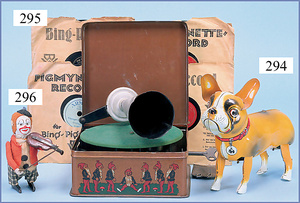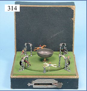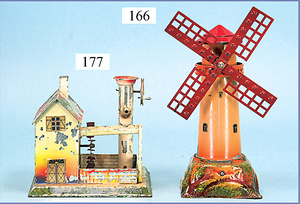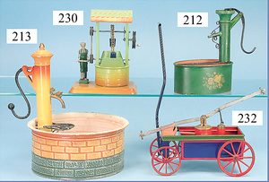 BING Mann am Schöpfrad, ohne Behälter, Blech lithogr., Grundplatte 16 x 7 cm, Druckstellen an der Figur, bespielt, gut