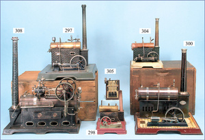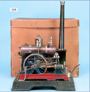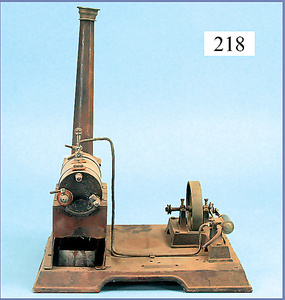 FALK, Nürnberg stationäres Lokomobil, brünierter Messingkessel, Wasserstandsglas, Pfeife mit Speisepumpe, Orig.-Brenner, Orig.-Schornstein, Kesseldurchm. 7 cm, Grundplatte 19,5 x 12 cm, sehr schöner Orig.-Zust., mit kl. Spielspuren, techn. Nicht geprüft, Orig.-Kart., mit Aufkleber, mit Anleitung u. Zubehör