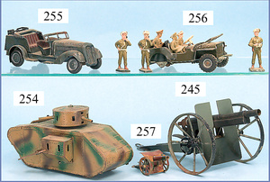 HAUSSER LINEOL, Nr. 822, feldgrau, Platten schwarz, Zahnrad fehlt, 1 Haltebolzen an der Kanone weggebrochen, sonst gut