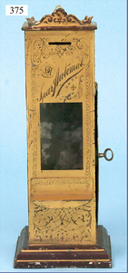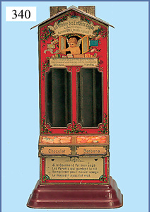 ausgef. Schokoladen-Automat, ca. 1910, 27 cm hoch, Blech lithogr., Sockel handlackiert, schöner Orig.-Zust., selten