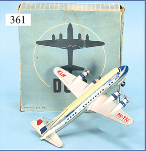 ARNOLD KLM, The Flying Dutchman, 4-motoriges Propellerflugzeug, Blech lithogr., 24,5 cm, Uhrwerk intakt, sehr guter Zust., Orig.-Kart., Kart. etwas verschlissen